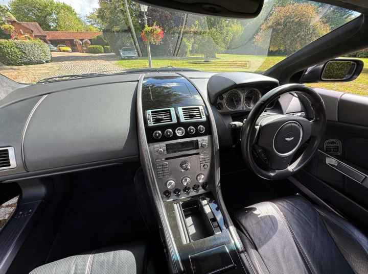 Finished in Onyx Black with Obsidian black hide interior with red stitching, this 2008 DB9 Coupe is in lovely condition throughout. The specification of these cars is always comprehensive and includes automatic transmission with paddle shift for the more enthusiastic driver. It has satellite navigation, climate control, electric heated seats with lumbar support and a fully adjustable steering column. Also fitted is a CD player, Piano black centre console, Powerfold mirrors, high spec Hifi, a black Alcantara headlining, Sport Pack 5 spoke alloys and red brake calipers. Having covered only 45,000 miles, it has remained in superb condition and comes with a full-service history. Priced really competitively for one in this excellent condition at only £29,950