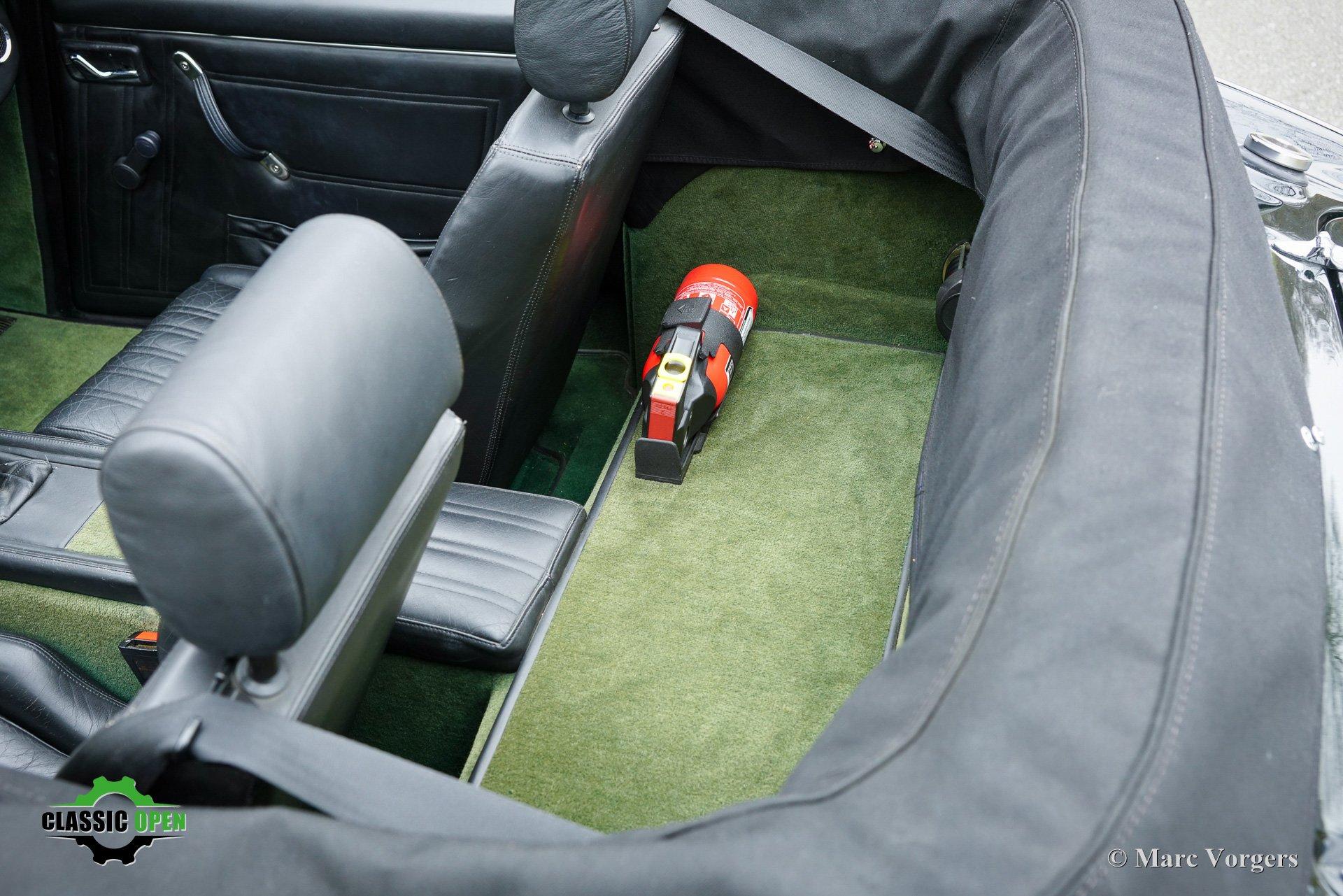 De carrosserie is uitgevoerd in donker ‘racing green’ (BMW 289), gecombineerd met een zwartlederen interieur en groene vloerbedekking.