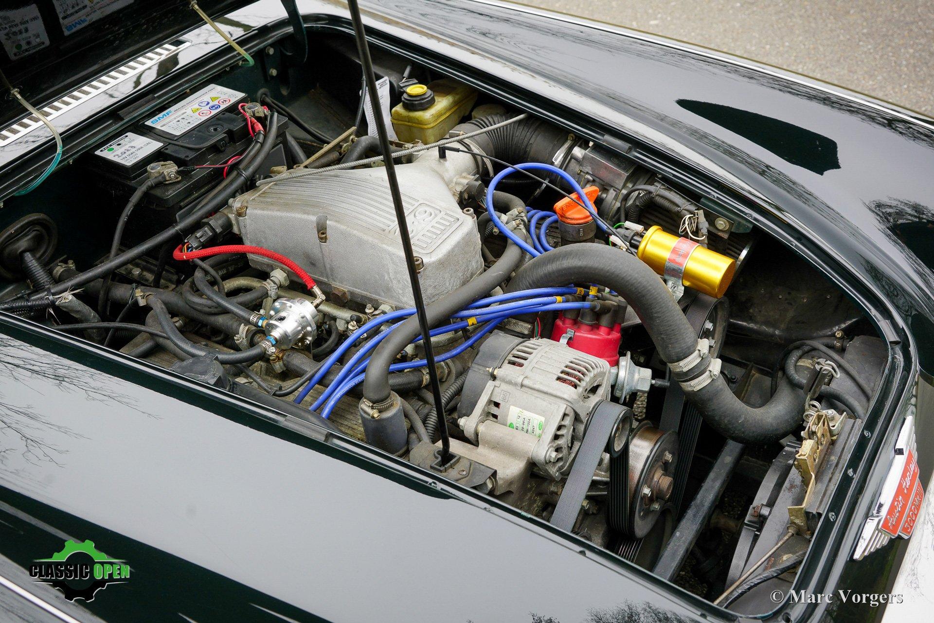 Bij het starten klinkt niet de ‘huil’ van een 3-liter zescilinder, maar het gerommel van een 190 pk sterke 3,9-liter V8 – dezelfde legendarische motor die ook in de Morgan +8 en de TVR S-serie te vinden is.