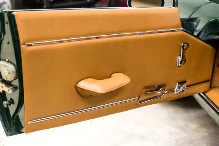 The paint, leather interior, soft top, bright work, body gaps, and body panel gaps are in excellent condition. The car just received a new set of tires. There are no cracks on the dash and no warping. The gauges are clean and work as designed.