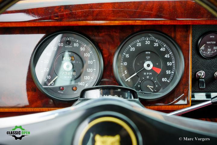 De originele ‘spats’ zijn ook inbegrepen. De 3,8-liter zescilinder-lijnmotor was de topmotor met een vermogen van 220 pk. Het vermogen wordt via een soepel schakelende automatische versnellingsbak naar de achterwielen overgebracht. Een zeer gewilde upgrade is het EZ elektrische stuurbekrachtigingssysteem. Andere nuttige verbeteringen zijn onder andere een elektrische koelventilator, een wisselstroomdynamo en elektronische ontsteking. Deze prachtige Jaguar Mk II wordt geleverd met een uitgebreide onderhoudshistorie en servicedossier van de afgelopen 15 jaar. De facturen tonen duidelijk aan dat kosten noch moeite zijn gespaard om de auto in zijn huidige uitstekende staat te brengen en op hoog niveau te onderhouden. Deze Jaguar Mk II 3.8 Liter Automaat is een werkelijk prachtig exemplaar!
