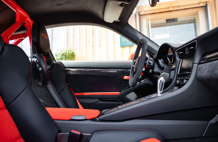The example we are presenting today is a Porsche 991.1 GT3 RS delivered new at Porsche Center Berlin in January 2016. A one-owner car, it has only 740 km on the odometer and remains in as-new condition. The car is finished in the striking “Lava Orange” exterior color, paired with a leather/Alcantara “Black–Lava Orange” interior, highlighted by “Lava Orange” seatbelts and roll cage. This GT3 RS also comes equipped with numerous options, such as the 90 L fuel tank, lift system, Audio Plus package, PDLS, Sport Chrono Package, and illuminated carbon door sills. With its ultra-low mileage and exceptional condition, this GT3 RS represents a rare opportunity to acquire a new example.