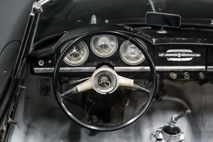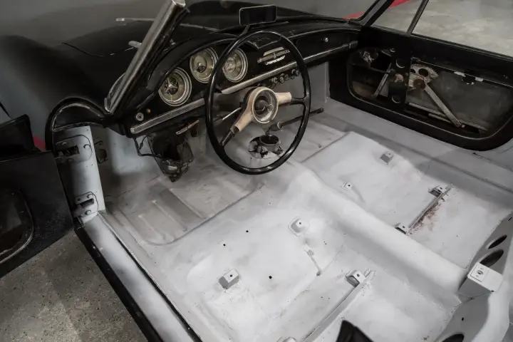 This 1961 Alfa Giulietta Spyder had a restoration started in 1978. Rust was removed with correct sheet metal was installed. Engine rebuild and the front suspension was rebuilt. Car currently is straight with good gaps and solid body panels, floorboards,and trunk floor.
