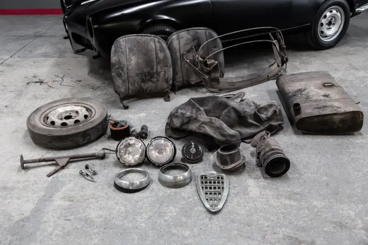 The car comes as you review it in the pictures.If you do not view a component that should be with car, then we do not have it to offer. A lot of heavy lifting has been performed on the restoration that has been started so the car is a great car to dive into and get it on its feet.