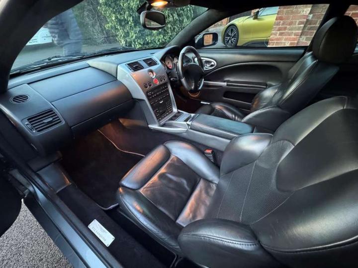 2002 Aston Martin Vanquish 2+2 in fabulous condition throughout, finished in Tungsten Silver with contrasting Charcoal hide interior. This a superbly kept unmarked example that has covered just under 54,000 miles and was purchased by the present owner in 2016. The car was originally supplied by “Aston Works Service” in Newport Pagnell who also carried out the servicing during 2003. The service book also contains stamps from Stratstone in Wilmslow through to 2009 at 37,456 miles and a single service by JCT 600 in Leeds during 2011 at 38,000 miles. We believe that the car then changed ownership to a gentleman in Kent, as between 2011 and 2016 it was regularly serviced by a specialist in southeast London. Bamford Rose also carried out a single service in March 2016 at 42,600 miles, after which in September 2017 it was sent to RS Williams in Cobham at 43,631 miles for a new Vanquish “S” clutch assembly and magnetic sensor at a cost in excess of £10,000. Since 2017, the car has been regularly maintained and upgraded by David Such at V12Vanquish.com with every invoice present in the car file. The standard Vanquish specification includes 6 speed semi-automatic transmission via Paddle-shift with sport mode and traction control, electrically operated heated seats with lumber support, Linn HIFI with multiple speakers, pale grey Alcantara headlining, fully adjustable steering column, heated front and rear screens, driver and passenger air bags and 19” multi-spoke allow wheels with high speed rated tyres. These Vanquishes are now very collectable and this superb example is very sensibly priced for one in this condition at £42,950