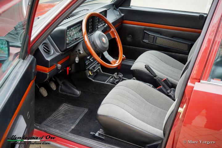 Alfa Romeo Alfetta 1.8 Berlina, jaar 1984 (eerste registratie 27-04-1984). Chassisnummer * ZAR01687 * 08520X *, motornummer AR01678 * 08520X *. Kleur Rosso Veneziano 536. Deze prachtige Alfa Romeo Alfetta werd nieuw verkocht in Italië. De auto is onlangs gekocht van de eerste eigenaar, de heer Giuseppe uit Ragusa. Deze Alfetta 1.8 Berlina verkeert in een fantastische en volledig originele staat en de auto heeft vanaf nieuw slechts 69.706 kilometer gereden. De Alfa Romeo Alfetta is een sportieve klassieke sedan met mechanische details van een sportwagen … Een aluminium viercilindermotor met dubbele bovenliggende nokkenassen, een 5-traps “transaxle” -versnellingsbak vlak voor de achterwielen voor 50-50 gewichtsverdeling, schijfremmen rondom en een de-Dion achteras. De auto rijdt, stuurt, en remt perfect! De automobiel verkeert in excellente originele conditie! De carrosserie is perfect en toont zijn originele lak, het interieur vertoont nagenoeg geen gebruikssporen. Deze prachtige Alfa Romeo Alfetta 1.8 Berlina wordt geleverd met de originele boekjes en twee sets sleutels. Een zeldzame vondst voor de Alfa Romeo liefhebber en/ of verzamelaar!