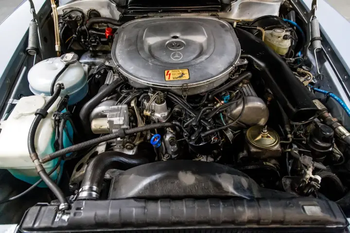 This lovely well preserved 37720 mile 380 SL just received a new double row timing chain. The car has extensive services prior to this ticket performed at 37301,services were performed by the franchise Mercedes Benz stores.