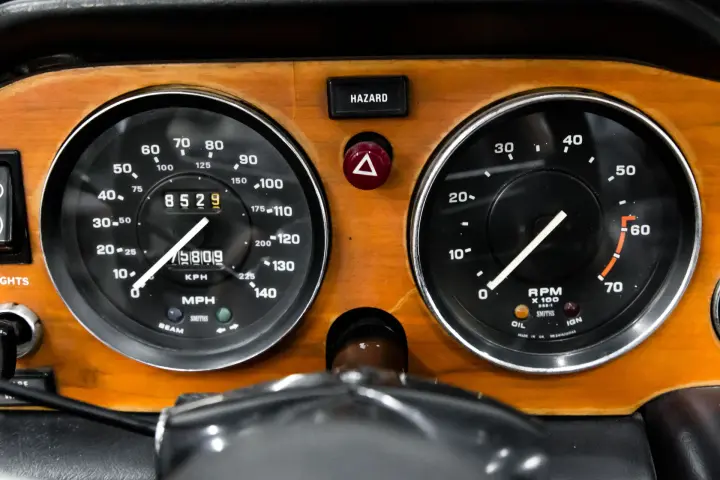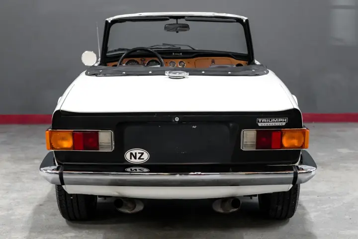 This honest SOLID Overdrive TR6 is as straight as it reflects in the pictures. Note the perfect factory panel gaps with all gaps vertically and horizontally are even and straight. The body seams are clean and correct. The doors are flush against the fenders and quarter panels. The panels are straight. Soft top is in good order. The tires are deep in tread mounted to original wheels with good finish on all four wheels and center caps. Paint is in good order .Interior seats are full, not broken down ,dash cap is good with no cracking or warping. Gauges are crisp, clean and work as designed.