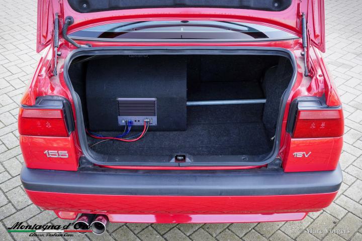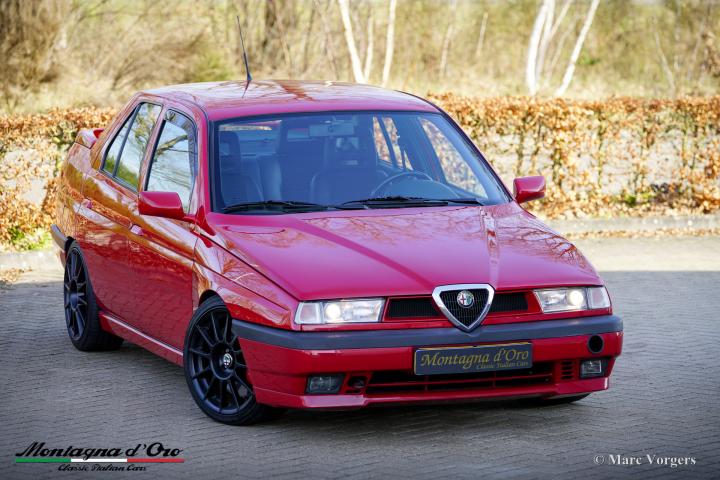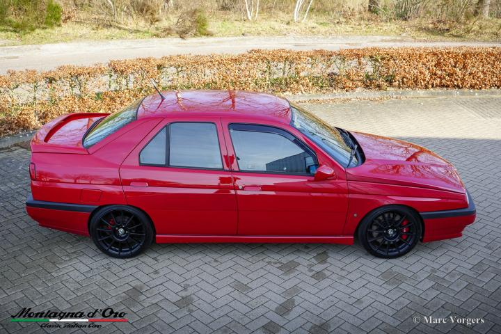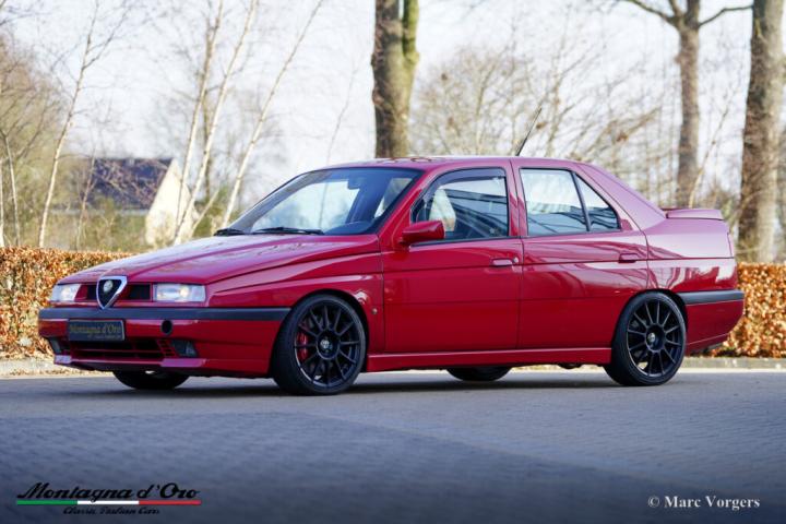 De vorige eigenaren hebben deze 155 een prachtige “wide body DTM-look” gegeven met de juiste stance en lichtmetalen velgen met laagprofielbanden die de wielkasten vullen. Andere sportieve details zijn de originele 155 achterspoiler, Brembo-remklauwen met vier zuigers op alle vier de wielen, een EPS-uitlaatsysteem met grotere diameter, een speciale ophangingskit, een Fusion-veerpootbrug, een Momo-sportstuur en een Squadra-chip in het motormanagementsysteem.