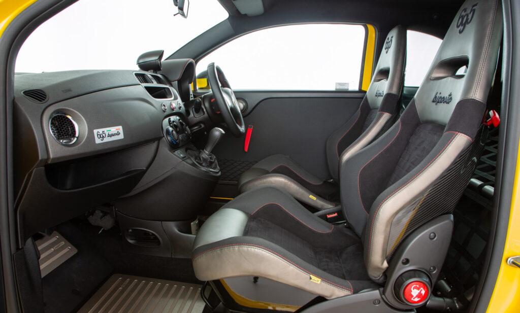 The special edition Fiat 500 Abarth 695 biposto ‘Record’ commemorates the Scorpion brand’s race heritage, with the production run of 133 representing the 133 records it holds. The livery and interior match those of the racing cars that have set many of those records, specifically the Fiat Abarth 1000 Monoposto record class G. This year marks the 50th anniversary of the Carlo Abarth acceleration record set by the then 57-year-old in 1965 which in October of that year, Carlo had lost 30 kilograms (66 pounds) of weight to enter the race after having failed to find the right driver for the car. His Class G sported 105 horsepower.