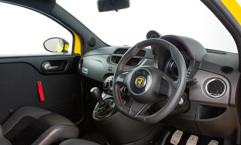 The clean and cute presentation of the original 500 has had a thorough re-work here by Abarth resulting in the sports focused 695 Biposto Record featuring aerodynamic styling upgrades in the shape of an extended front bumper and chin spoiler / louvers, side skirts, rear wing and a diffuser surround for the unique exhaust system. The Modena coachwork is in excellent order, commensurate with age and mileage. This rich race heritage of Abarth has been applied and displayed proudly with a variety Record Edition badges over the car leaving any passer by that this is no ordinary Fiat 500 but something very limited and rare.