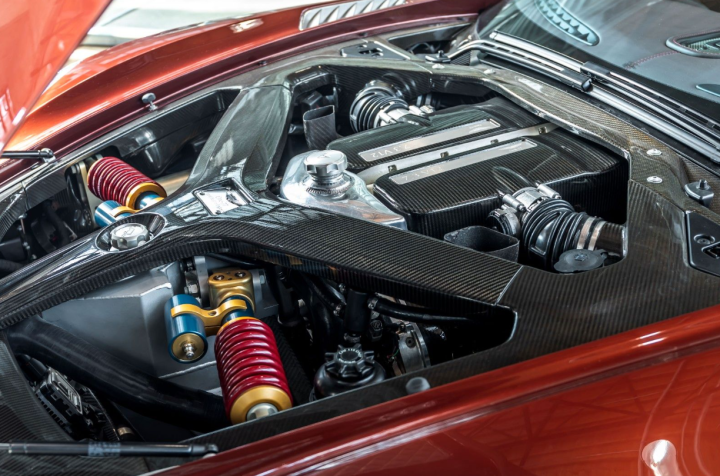 Ein weiterer bedeutender Aspekt des Karosseriebaus ist, dass sie komplett aus Aluminium von Hand gefertigt ist. Es handelt sich um eine Form, die nur durch die Produktion in extrem geringer Stückzahl von Hand möglich war. Dieser Prozess ermöglichte es Aston Martin, eine Form zu schaffen, die mit konventionellen Produktionsmethoden nie möglich gewesen wäre. Es ermöglichte auch, dass das Heck des Autos keine Spaltmaße aufweist; nur ein nahtloses, von Hand geschlagenes Stück Aluminium. Es ist wirklich ein wunderschönes handwerkliches Meisterstück