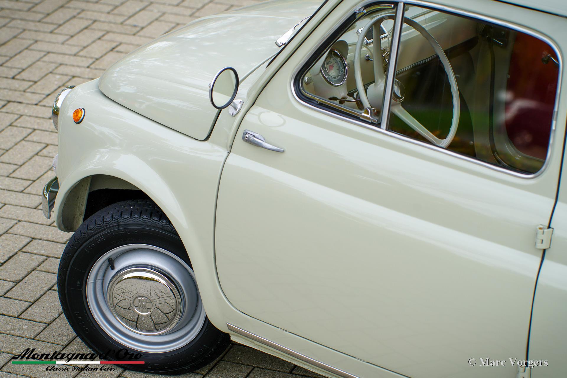 Deze Fiat Nuova 500 Giardiniera verkeert in een excellente conditie! De kilometerteller staat op 82.796 kilometer. De carrosserie ziet er gloednieuw uit en is in het verleden prachtig gerestaureerd/ overgespoten; het interieur verkeert in een prachtige en uitstekende staat. De motorruimte ziet eruit alsof de auto twee jaar geleden de fabriek heeft verlaten. Deze prachtige Fiat 500 Giardiniera toont alle originele details en de auto rijdt en stuurt voortreffelijk.