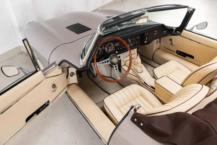 Every detail has been meticulously refined, from the engine overhaul to the interior, resulting in an exceptionally sophisticated E-Type. This restoration, which continued until 2024, has brought the car back to a condition that surpasses its original glory.