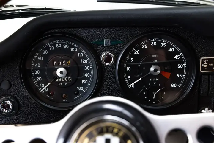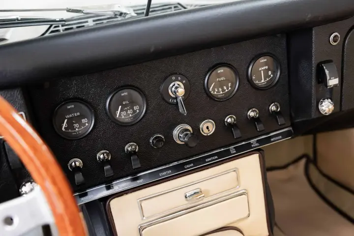 This particular example is an early Series 1.5, recognizable by its classic features such as the open headlights, the three SU carburetors, and the original dashboard with the characteristic Series 1 switches. Additionally, the elegant Series 1 bumpers have been retained, further enhancing its authentic appearance. The car was built in late 1967 and entered the market in 1968.