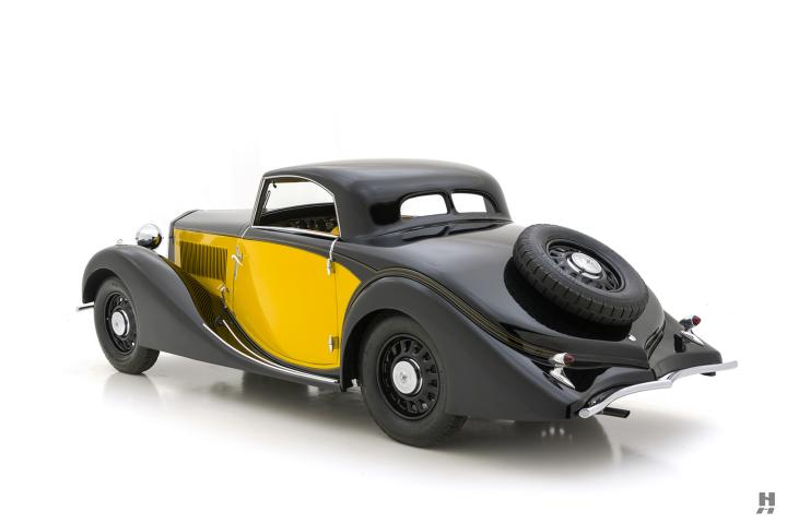 Mr. Moir turned to his favorite restorer, David Steinman of Waitsfield Motor Car Company in Vermont to restore the Lancia to his standards. Steinman faithfully and meticulously restored it in a stunning combination of black with yellow body sides, yellow accent lines, and a spectacular yellow ostrich leather interior, complete with matching ostrich bags behind the seats. As discovered, the car was missing its delicate Art Deco bumpers, which were faithfully recreated using period photos.