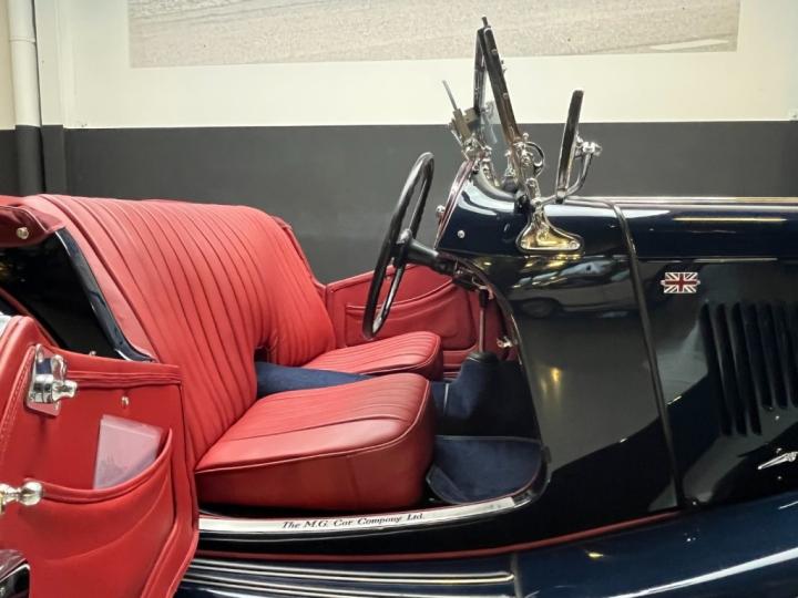 Visually, the car presents beautifully. It has been resprayed in a deep, classic dark blue, a colour that suits the TC’s lines perfectly and highlights its elegant proportions. This is complemented by a dark red interior, including seats, hood, tonneau cover and boot cover — a refined and period-correct colour combination that feels both sporting and understated.