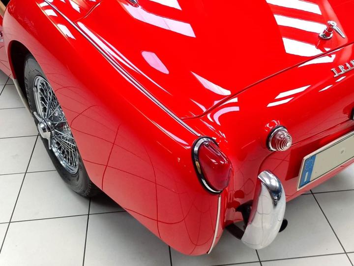 The TR3A is notable for its wide front grille, minimalist yet charming interior, and excellent driving dynamics. Its lively engine, light weight, and responsive steering make it a joy to drive.