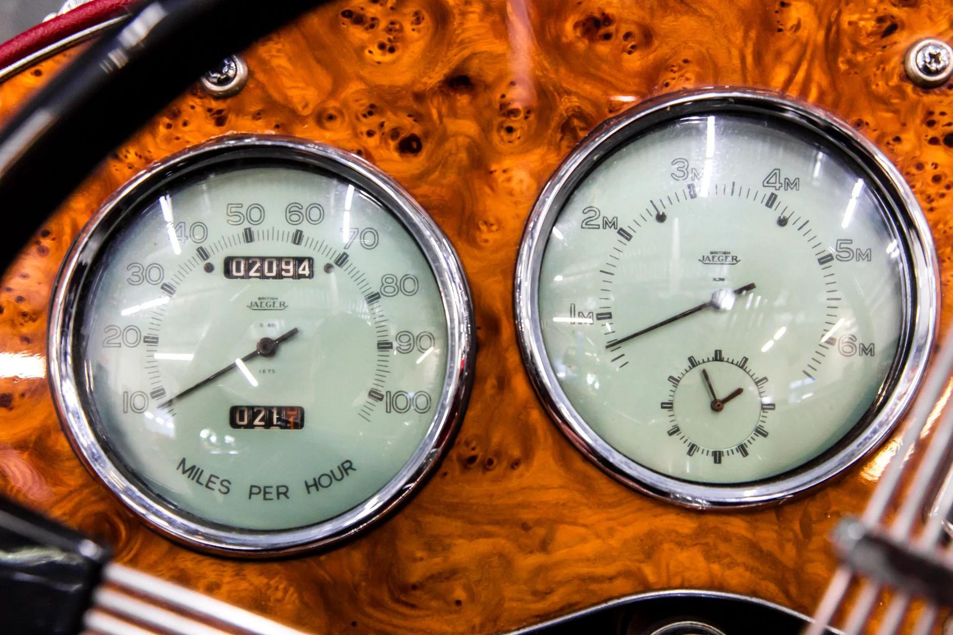 The wheels married to the beautiful burl wood dash ,the deep red leather, the independent wind screens, chrome mirrors and PB style steering wheel gives this car a unique look ,an aggressive look. The car has been restored and maintained its original numbers matching engine.