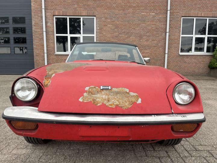 The body is straight and retains its original panels, with no visible signs of prior accident damage. It was repainted once in its original red colour using an older synthetic paint system. This paint is now peeling in several areas and will need to be stripped for a quality respray. There are a few minor dents, but no structural issues.