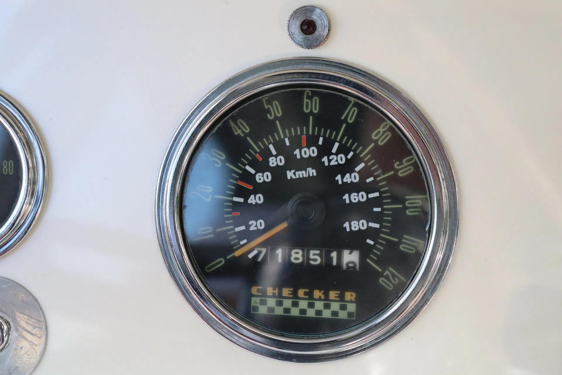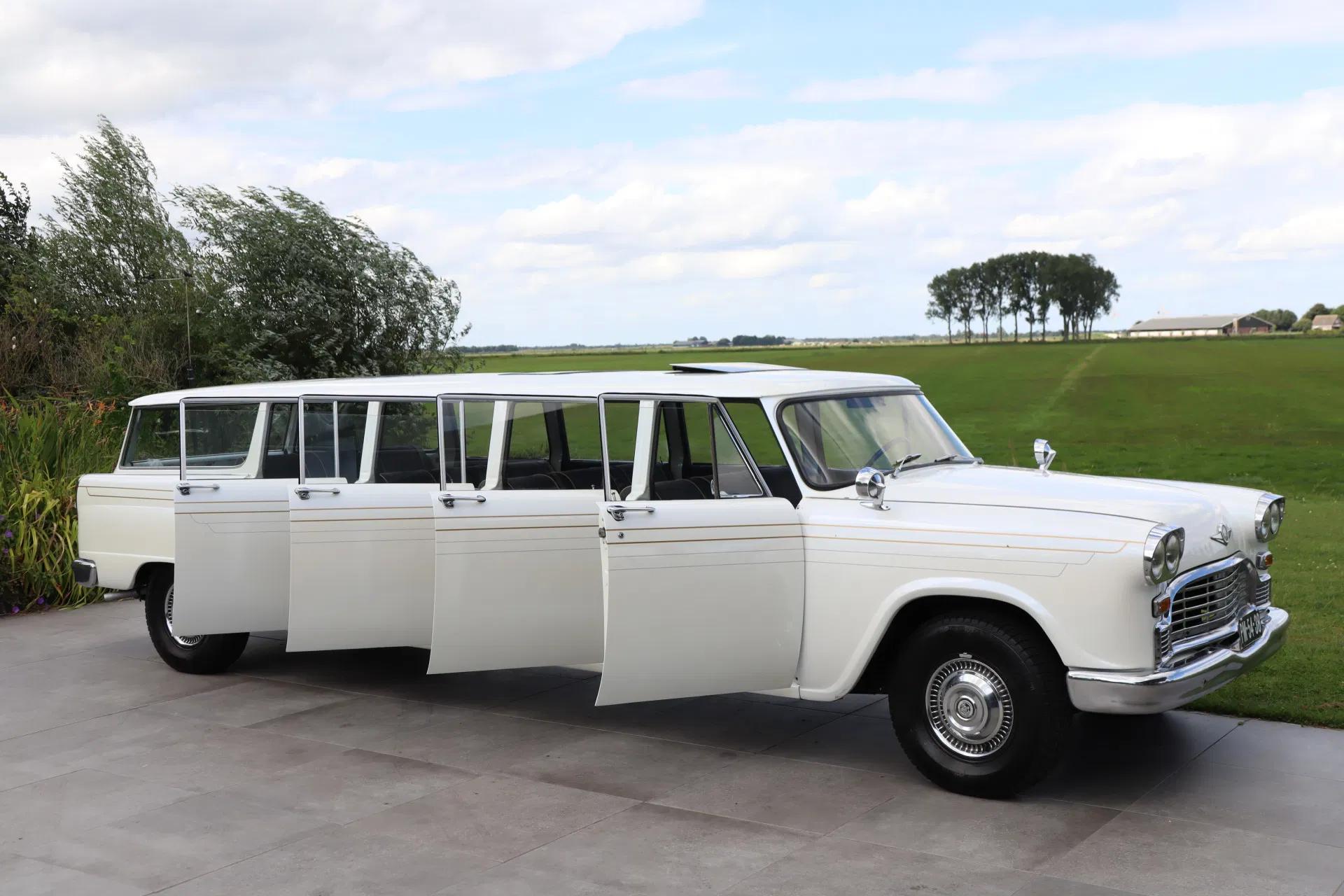 No expense has been spared in restoring this Checker. The bodywork has been sandblasted and repainted in beautiful white paintwork. Subtle striping has been applied to the side. Most of the chrome has been renewed and is in normal condition with signs of wear. The rubbers have also been renewed, as have the wheels. At the time, the car, with a length of 6.70 metres, was listed in the Guinness Book of Records as the longest production car ever.