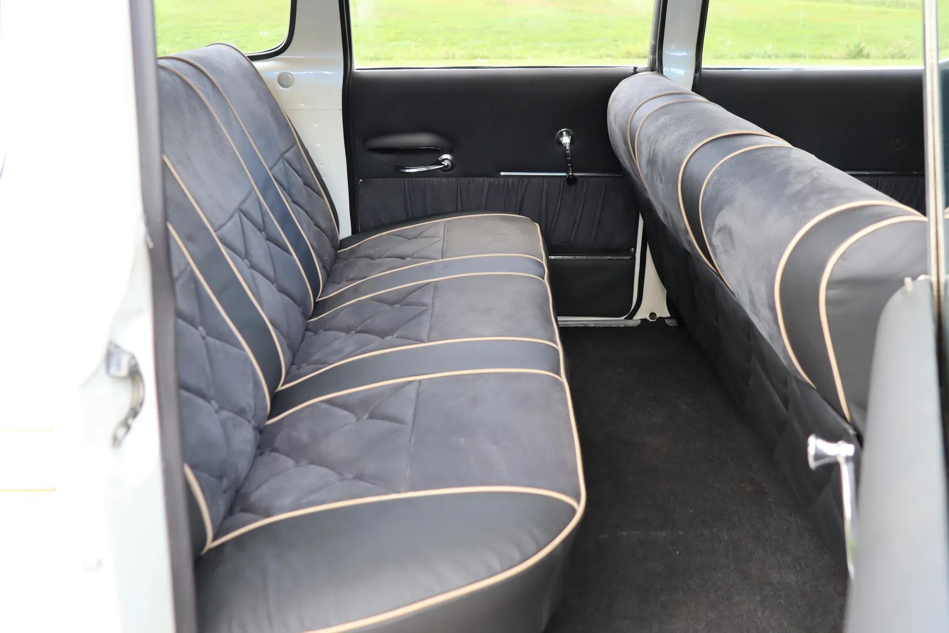 The interior has also been refurbished, with the seats reupholstered in dark blue leather instead of imitation leather. No fewer than four seats can accommodate three people, giving a total of 12 passengers. The air conditioning system was quite unique for its time. The car also has three electrically operated sunroofs.