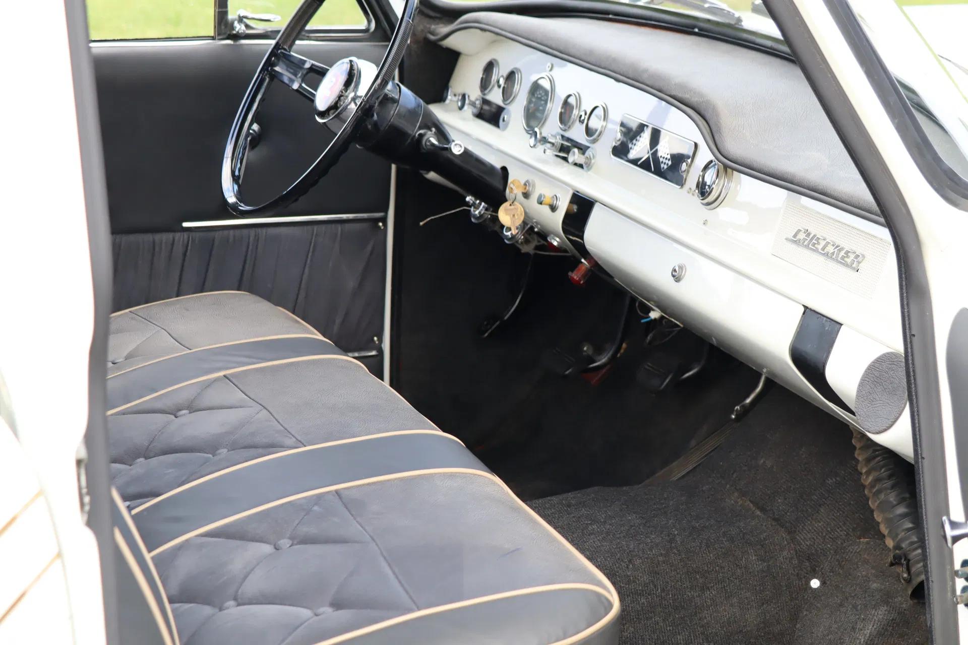 Kosten noch moeite zijn bespaard om deze Checker te restaureren. Zo is de carrosserie gezandstraald en opnieuw gespoten in fraai, wit lakwerk. Aan de zijkant is subtiele striping aangebracht. Het chroomwerk is veelal vernieuwd en verkeert in normale staat met gebruikerssporen. Ook rubbers zijn vernieuwd, evenals de wielen. Destijds stond de auto met een lengte van 6,70 meter genoteerd als langste productieauto ooit in het Guinness Book of Records.