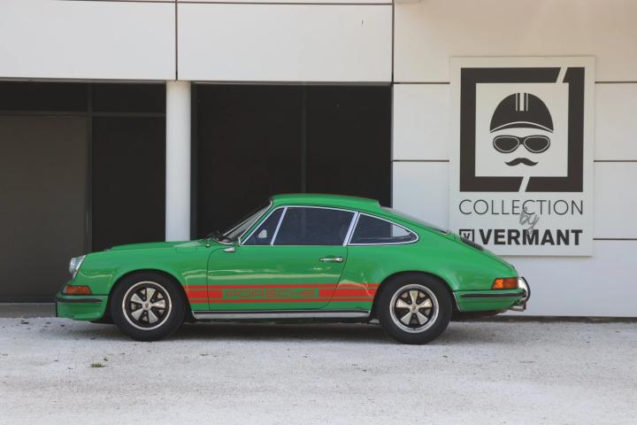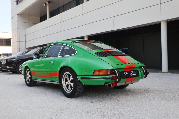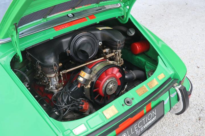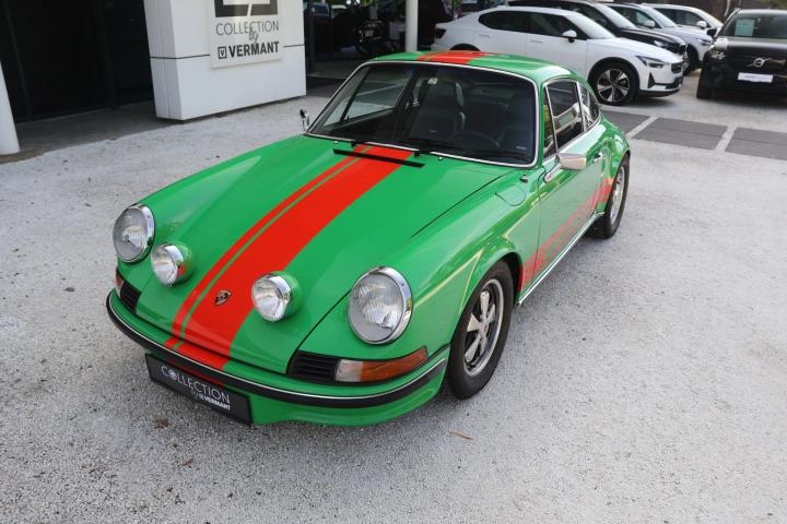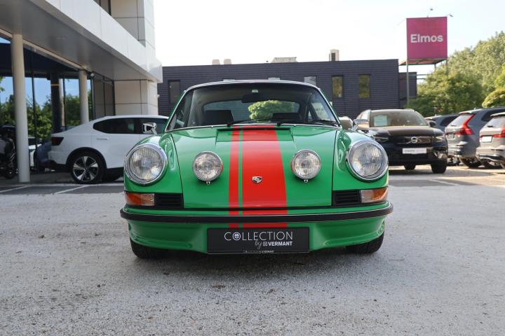 “Collection by Vermant” is pleased to be Able to offer you this striking Porsche 911 T from 1973. The 911 model was released in 1963 and was an immediate succes. As a successor to the 356 series, the 911 presented not only improvements on a mechanical aspect but also boasted a more contemporary design. The 911 featured a completely new engine with 6 cilinders instead of the 4 cilinders that could be found in its predecessor. However, the iconic boxer lay out remained the same and is still used to this date. After Some small iterations of the 911, a big improvement was made in 1973 when the engine was uprated to 2.4 litres instead of the 2 litres it originaly came out with. This specific 911 was originally delivered in the United States in 1973, making this the desirable 2.4 l engine model. Being a T model, this 911 was equiped from the factory with carburretors. This further enhances the pure driving feel and performance that this car has to offer. This 911 doesn’t only look sporty but was also tweaked for optimal driving performance. The suspension and underside of the car was prepared for classic car rallying with firmer shock absorbers, heavier anti roll bars and also skid plates to protect the underside of the car from damages.