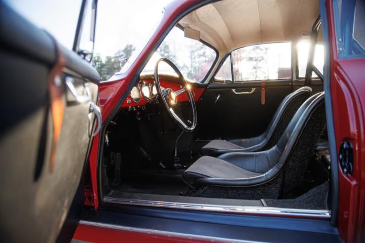 This example, chassis 115381, left the factory finished on March 23, 1961, in Ruby Red with a black interior and mouse grey corduroy seat inserts. Prominent Swedish rally driver, Harry Bengtsson, began his racing career in 1950 with a Volkswagen Beetle purchased with proceeds from his 5,000kr lottery winnings. He quickly established himself as a dominant force in the local racing scene. “Rally Harry” as he became known won numerous races in his Volkswagen before upgrading to the 356 Super 90 GT on April 18, 1961- his 33rd birthday. His first race with the car was the Tulip Rally, where he took 2nd in his class and 16th overall.