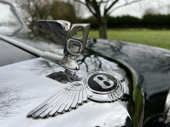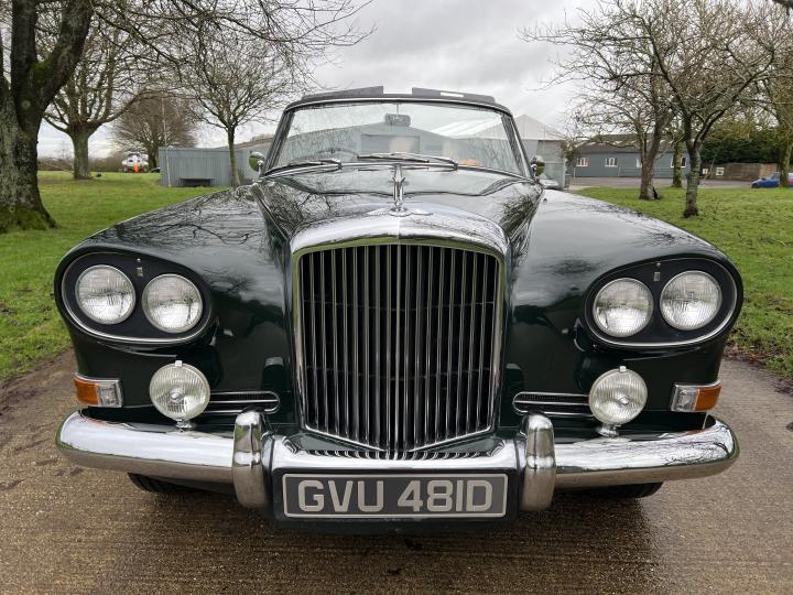By late 1962 the success of the S Series Continental Bentleys entered its third and final chapter, with the introduction of the S3 Continental. The major cosmetic change was the introduction of the twin headlight system, providing Bentley drivers with more illumination. Mechanically speaking the S3 Continental was very similar to the S2 Continental, but benefited from having larger carburettors fitted and an upgraded power steering system. The success of the Vilhelm Koren designed Bentley S2 Continental had pleased the powers that be at Park Ward and his design was adapted for the S3 Continental chassis, with the introduction of twin headlights. The coachwork did not lend itself happily to horizontal headlights so they were instead positioned on a slight slant, a design that has commonly become known as the Chinese Eye. Chassis No BC100XE which we are currently offering for sale is one of fifty eight cars built in right hand drive to Design No 2006 by Mulliner/Park Ward on the S3 Continental chassis. It was originally completed in December of 1965. Supplied by Jack Barclay Ltd through their west London showroom to its first owner, Mr John Osborne of Chester Square in London. Being a late production example, it benefits from having the slightly lipped wheel arches and chrome strips on the coachwork, giving it arguably a more attractive appearance than the earlier cars. During the 1980’s the car was exported to the United States and in around 2012 it was restored to its striking current configuration, in Balmoral green with a tan hood and a fawn leather interior and matching hood cover. It was supplied in 2014 to its present owner and formed part of a small collection of high quality cars. It comes fully serviced, prepared and tested by Frank Dale & Stepsons and is complete with copy chassis cards and tools. This model continues to become more popular each year and we consider this fine example to not only be a very usable and beautiful classic Bentley, but also one that may benefit from future appreciation in value. Ready to enjoy.