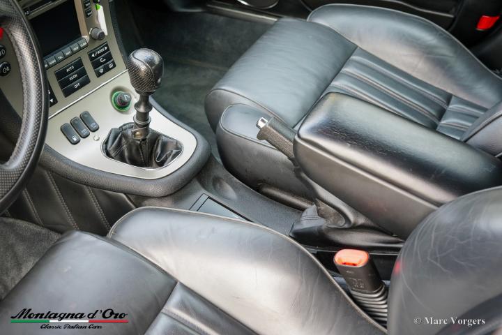 Carrosseriekleur Azzurro Nuvola 414B. Het betreft een prachtige zilver metallic lak met parelmoereffect, de lak vertoont een lichtgroene, lichtblauwe of violette gloed afhankelijk van de lichtinval. Het interieur is uitgevoerd in zwart leder gecombineerd met donkergrijs tapijt en zwarte matten.