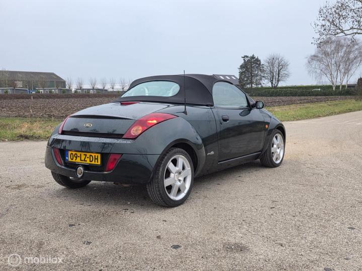 Deze first edition StreetKa is lekker luxe uitgevoerd met werkende airco, stoelverwarming, bluetooth radio en een prachtige kleur. Heel chique dat donkergroen met bruin leren interieur. Auto rijdt als een speer, geen roest, lak is erg mooi, op foto was hij beetje nat , dus dat vertekend op de foto wellicht. Leuk en betrouwbaar alternatief voor Aygo, c1 etc. Want in de zomer lekker met dak open rijden is wel heel luxe.