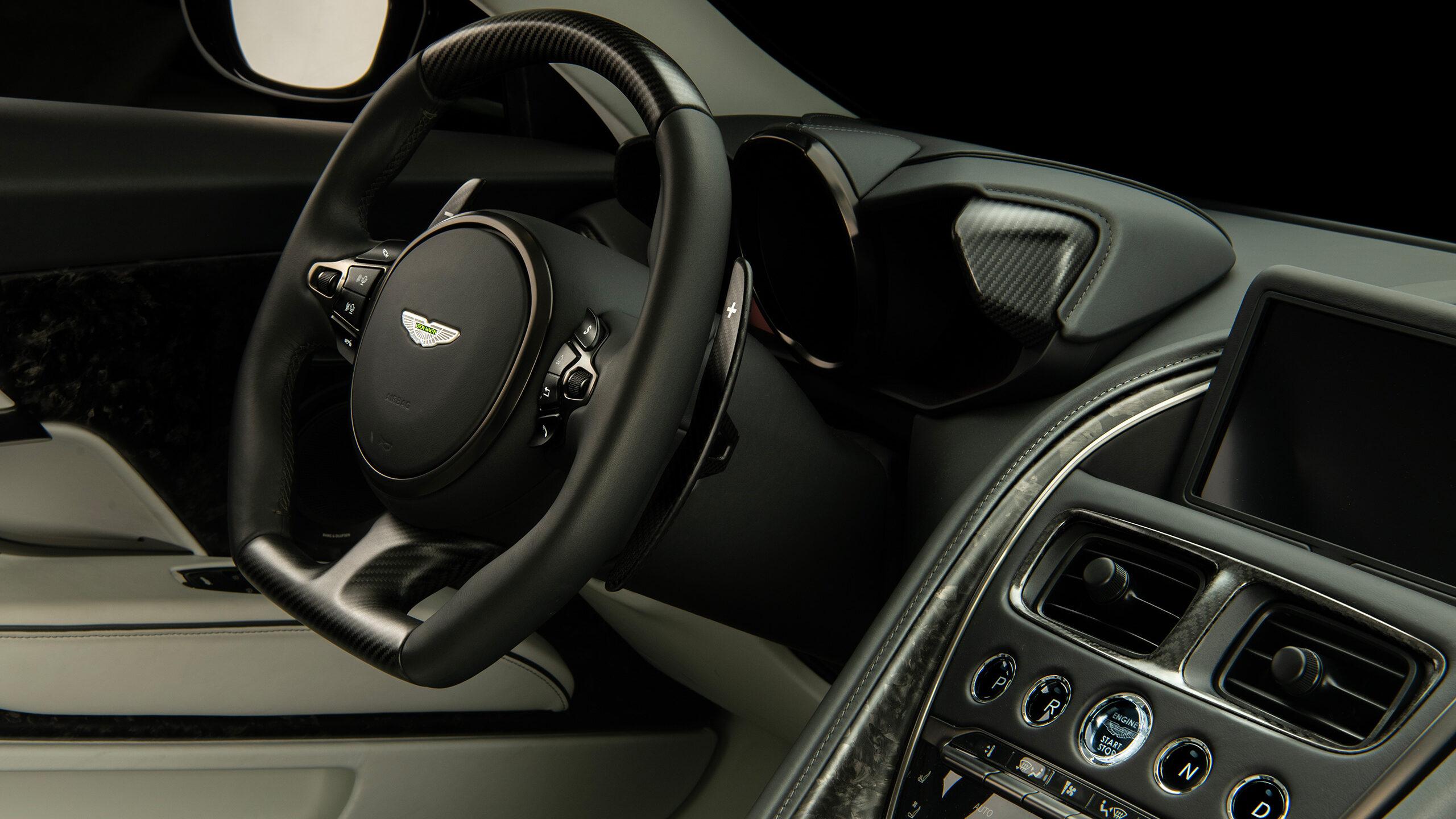There’s 5.2 litres before the turbos spool up, so the DBS starts moving as soon as you squeeze the throttle, but when the turbos chip in, which they do from ludicrously low revs with hardly any throttle opening, the DBS lunges forward. It does this from 2000 rpm in any gear, and the deeper you’ve pressed the throttle, the deeper the V12 and its turbos will dig. It’s mighty and slightly terrifying performance,an eye-widening, jaw-slackening grunt that makes you suddenly more interested in the ability of the rest of the car and your connection with it, particularly in the wet. Happily, it’s all good news. Firstly, the ride is firm but fair, taking the edge off all manner of tricky Tarmac, while pitch and roll are well managed, giving the Ultimate a feeling of solid composure. Early DBSs felt soft at the rear, perhaps to aid traction, whereas the Ultimate feels all of a piece yet still finds remarkable traction. The steering is rather good, too, precise and slack-free, the nose obedient. The efforts are perhaps a fraction high but accurately convey the car’s mass.